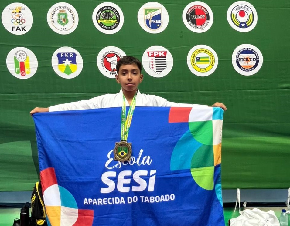 Alunos-atletas da Escola Sesi de Aparecida do Taboado brilharam na última etapa do Campeonato Brasileiro e Estudantil de Karatê em João Pessoa (PB). Pedro Souza conquistou o 3º lugar na modalidade Kata individual, categoria sub-12 do Brasileiro. Otávio Augusto Belchior também faturou bronze na modalidade Shiai Kumite, categoria cadete do Estudantil.